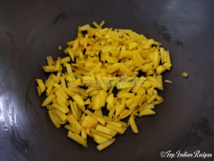 Take a pan add 1 tsp ghee and 2 apple (peeled and diced), sauté on medium flame for 2 min or until the apple is cooked well. Keep aside.