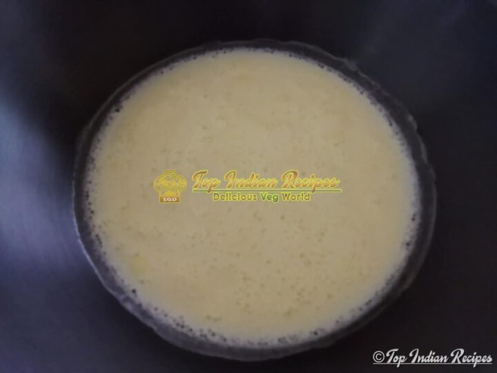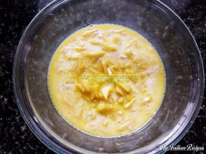 Remove from the flame. Then allow the milk to cool completely. Now add cooked apple and mix well. Make sure both apple and milk is to room temperature, else there are chances of milk to curdle.