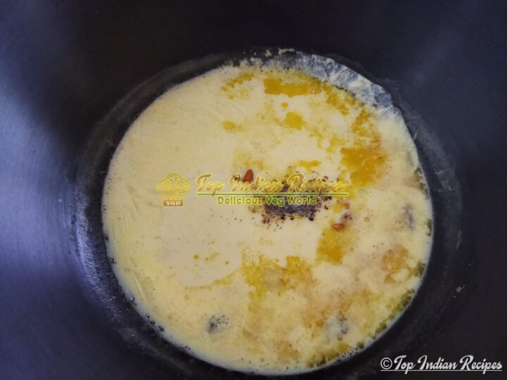 Take a small pan add 1 tsp ghee, raisins and cashews, fry for a minute.