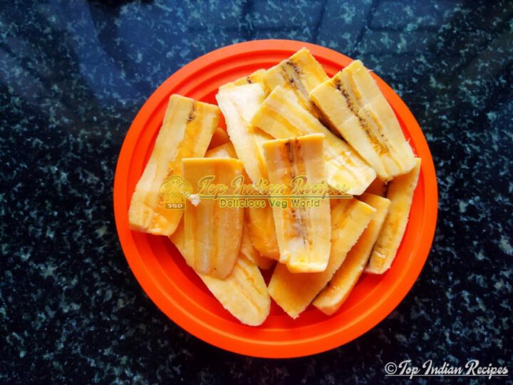 Heat oil in a kadai and deep fry to golden brown. Kerala style Ripe Banana Pakora ready.