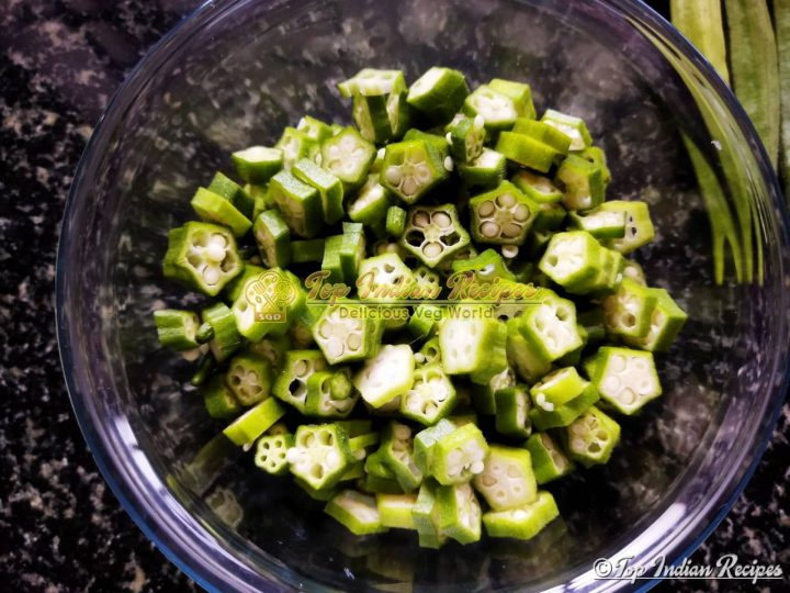 Wash and wipe the bhindi well making sure there is no moisture before chopping. Cut it thin roundels.