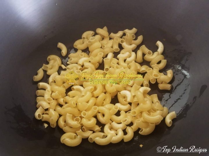 In a same pan add 1/2 cup macaroni sauté for 30 seconds.