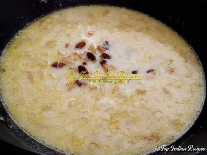 Mix it well. Finally add roasted cashews and raisins and let the payasam cook for 5 min.