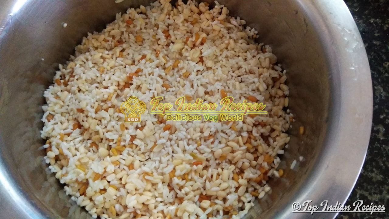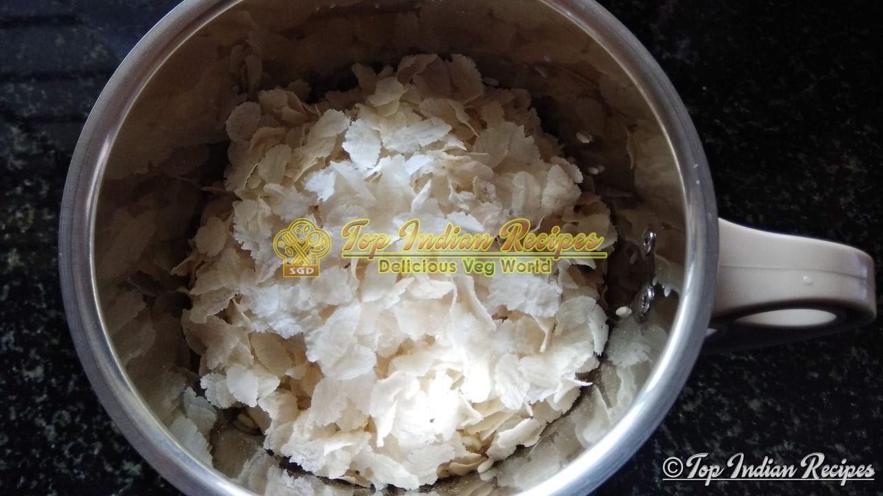 Using a little water in which the rice is soaked, grind to a fine paste, add 1/4 cup poha while grinding.