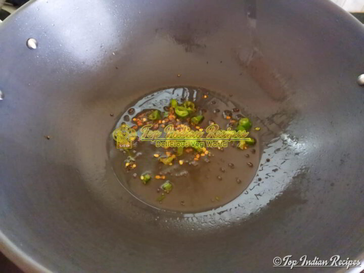 Take a kadai heat 1 tbsp oil and add 1 tsp urad dal, 1 tsp mustard seeds, 1 tsp cumin seeds, 1 tbsp chopped green chilli fry for a min.