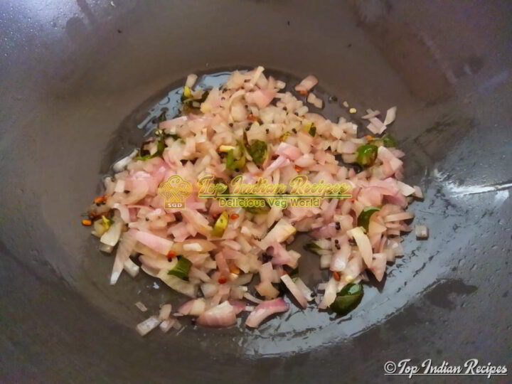 Add chopped curry leaves and 1 chopped onion sauté till onion become translucent.