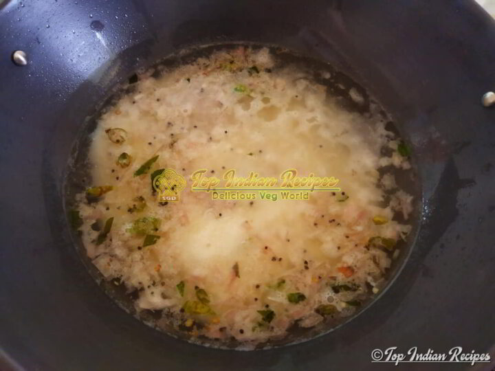 Heat the water and let it come to a rolling boiling. Now lower the flame then add 1 cup Idli rava slowly stirring immediately.