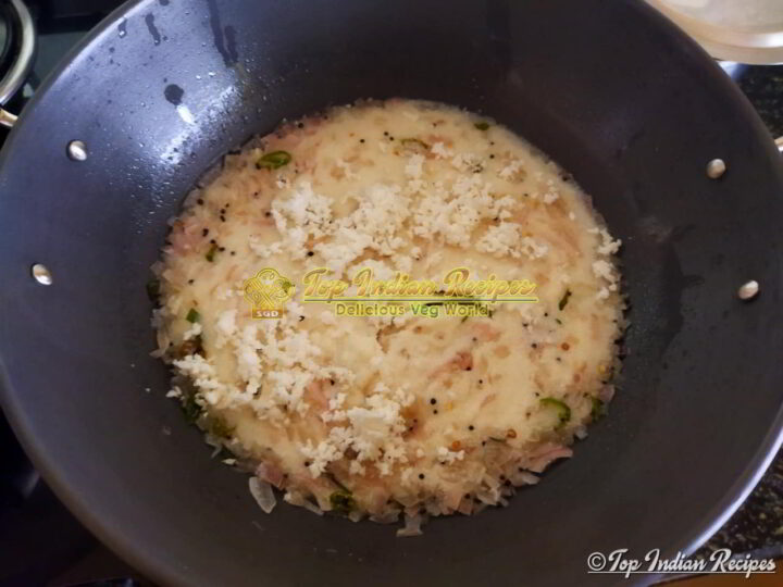 Steam for a minutes on the low flame, add 1 tbsp grated coconut.